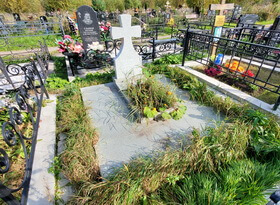Очередная уборка на могиле из светлого гранита
