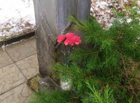 Уборка могилы и возложение цветов зимой